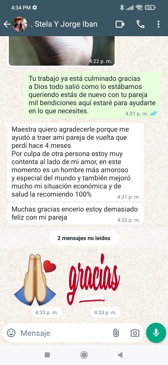 Soy experta en amarres de amor para recuperara a tu pareja, por mas de 25 años he recorrido el país aprendiendo sobre artes ocultas para ayudarte en todo lo relacionado con el amor